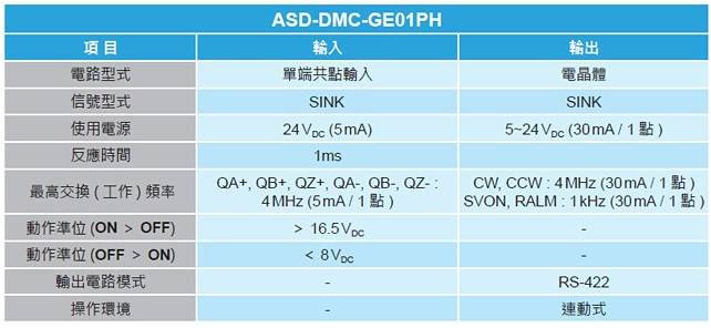 搭配 ASD-DMC-GA01主機,可擴充 1組 4M 高速脈沖界面